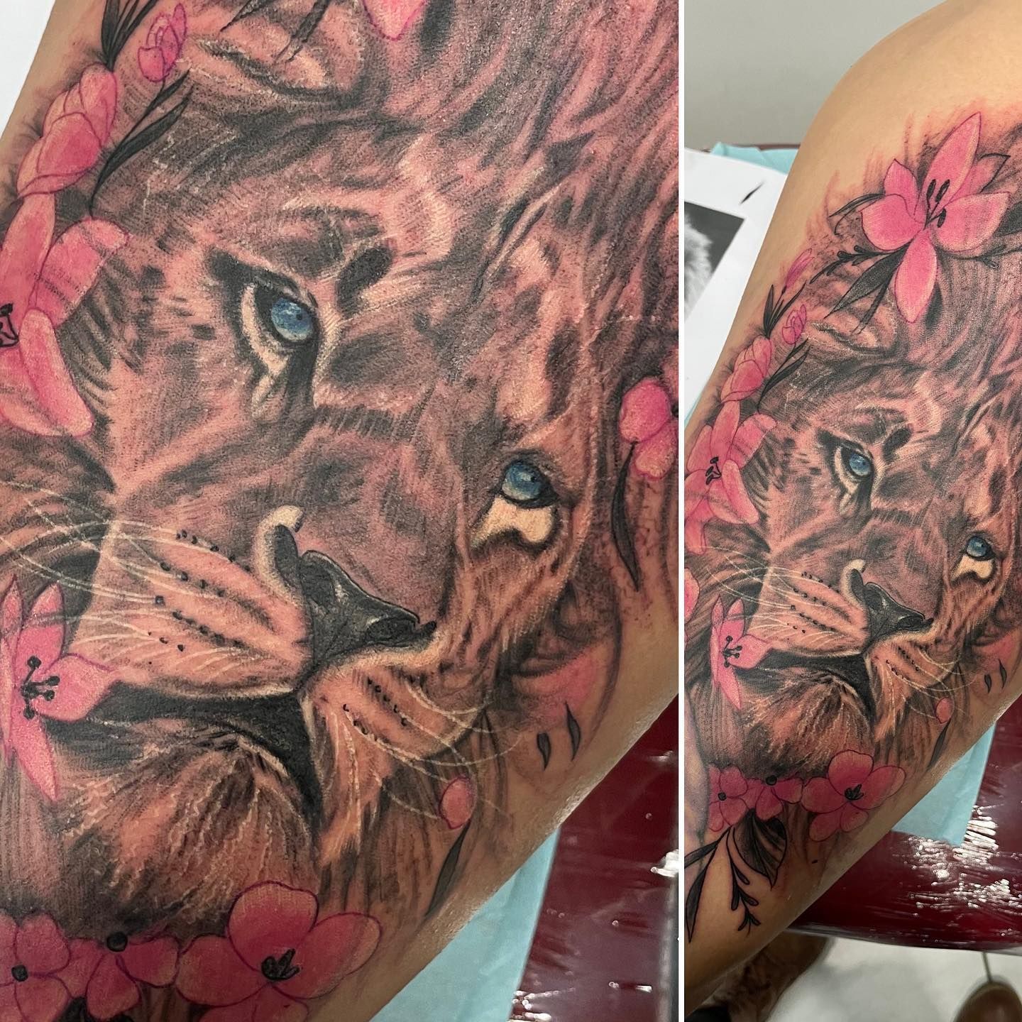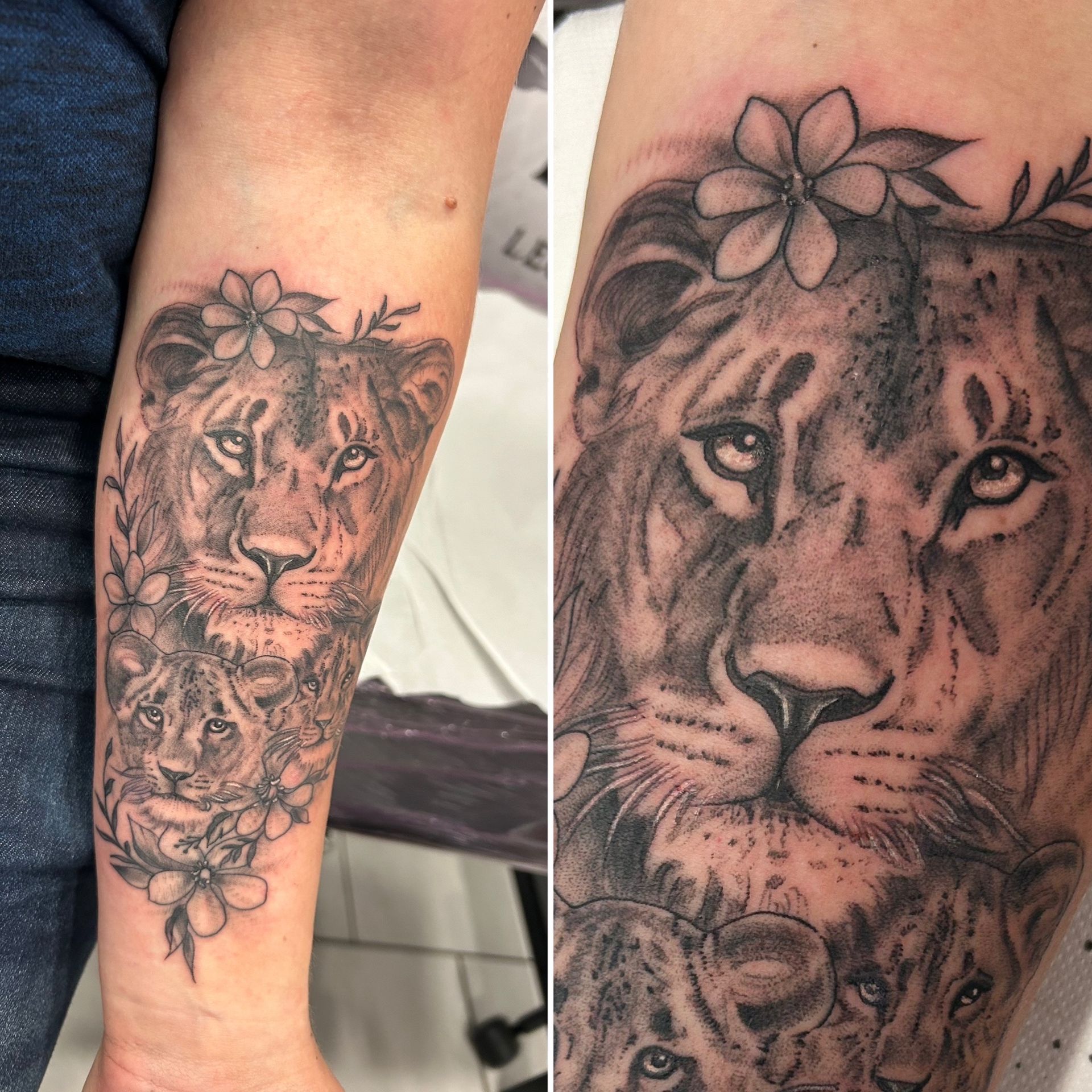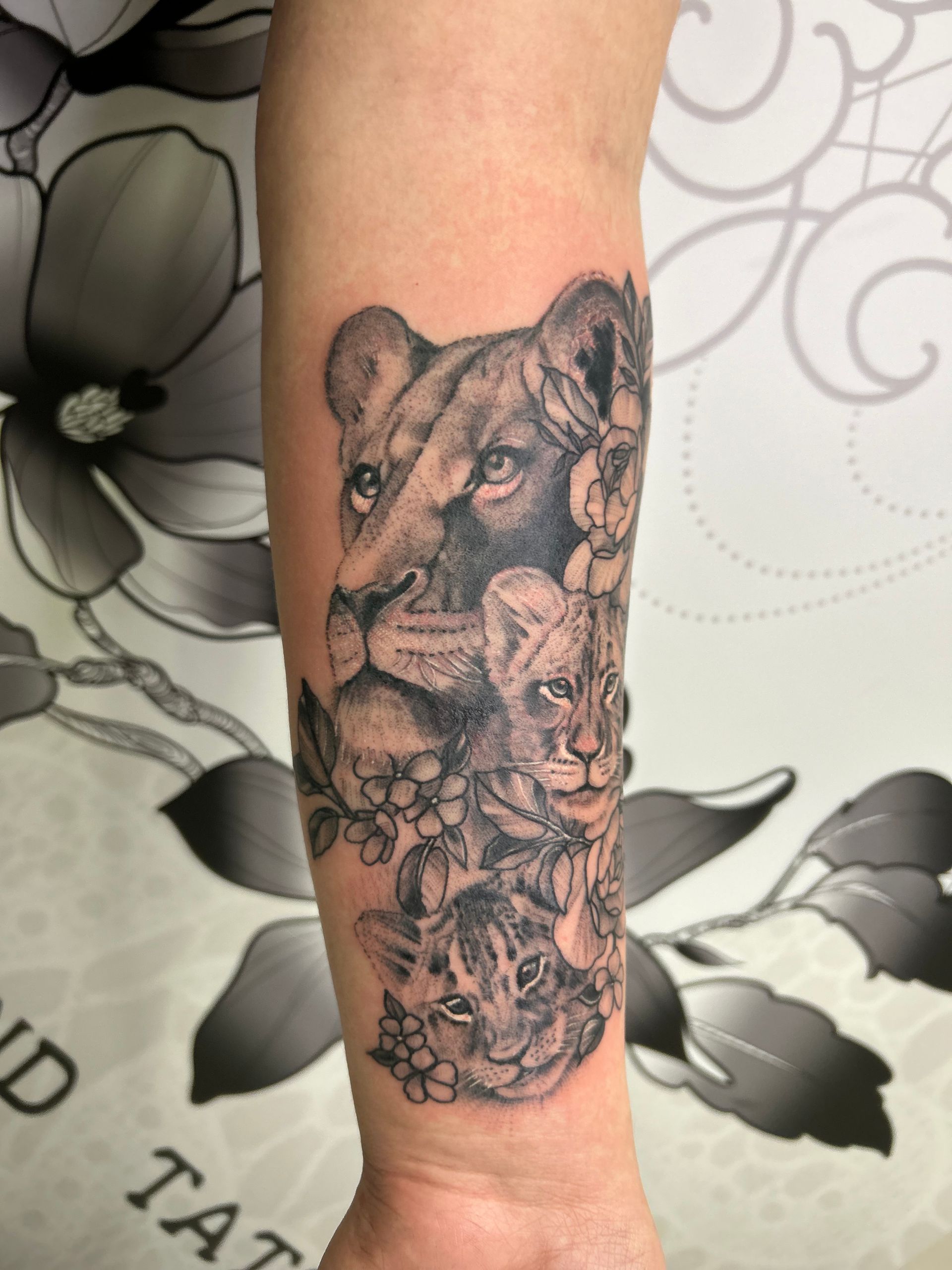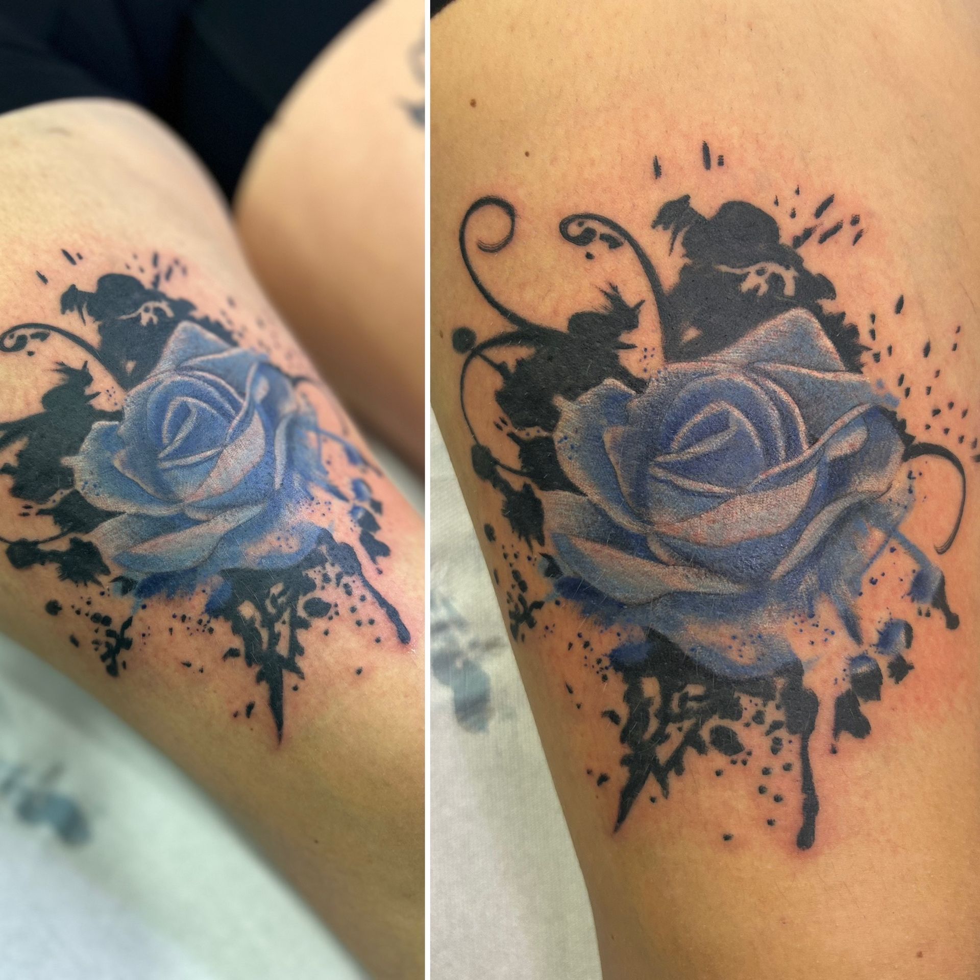 Tatoueuse depuis 12 ans, Delphine propose un univers très girly orné de fleurs et de dentelle aux tendances réalistes, mais aussi un travail d'inspiration mandala en dot, en noir ou en couleur.