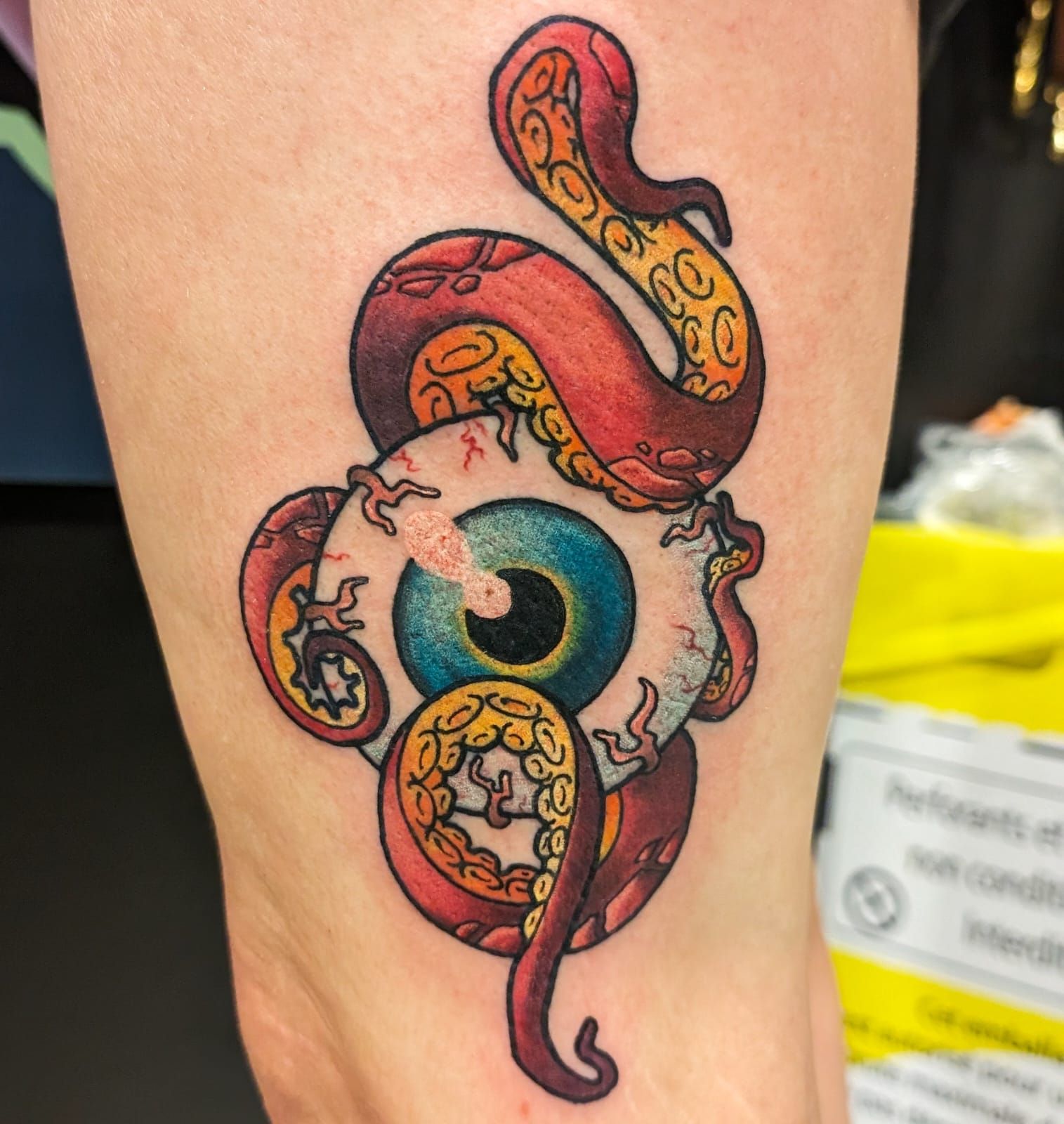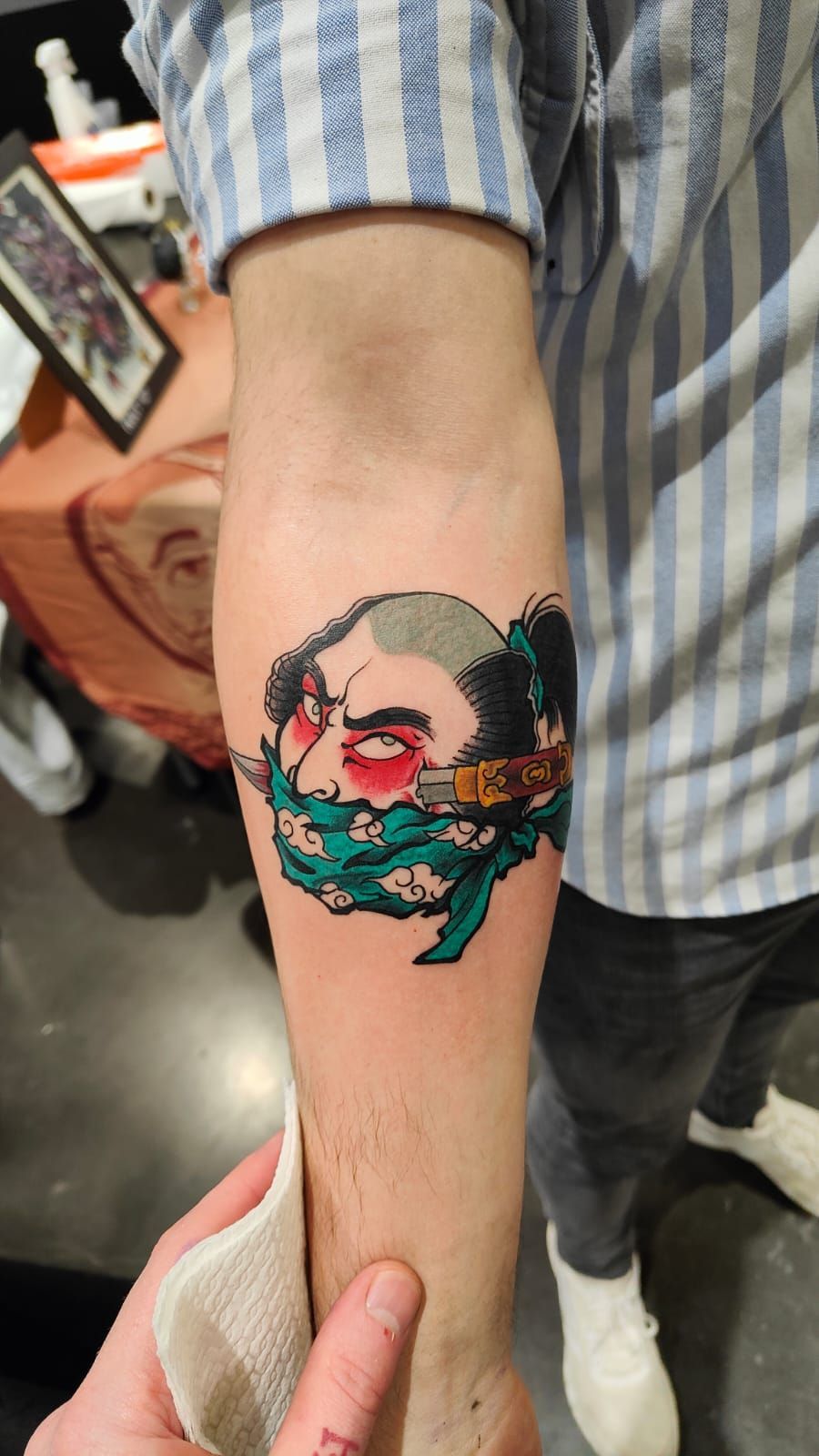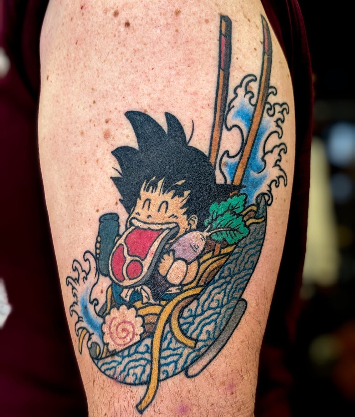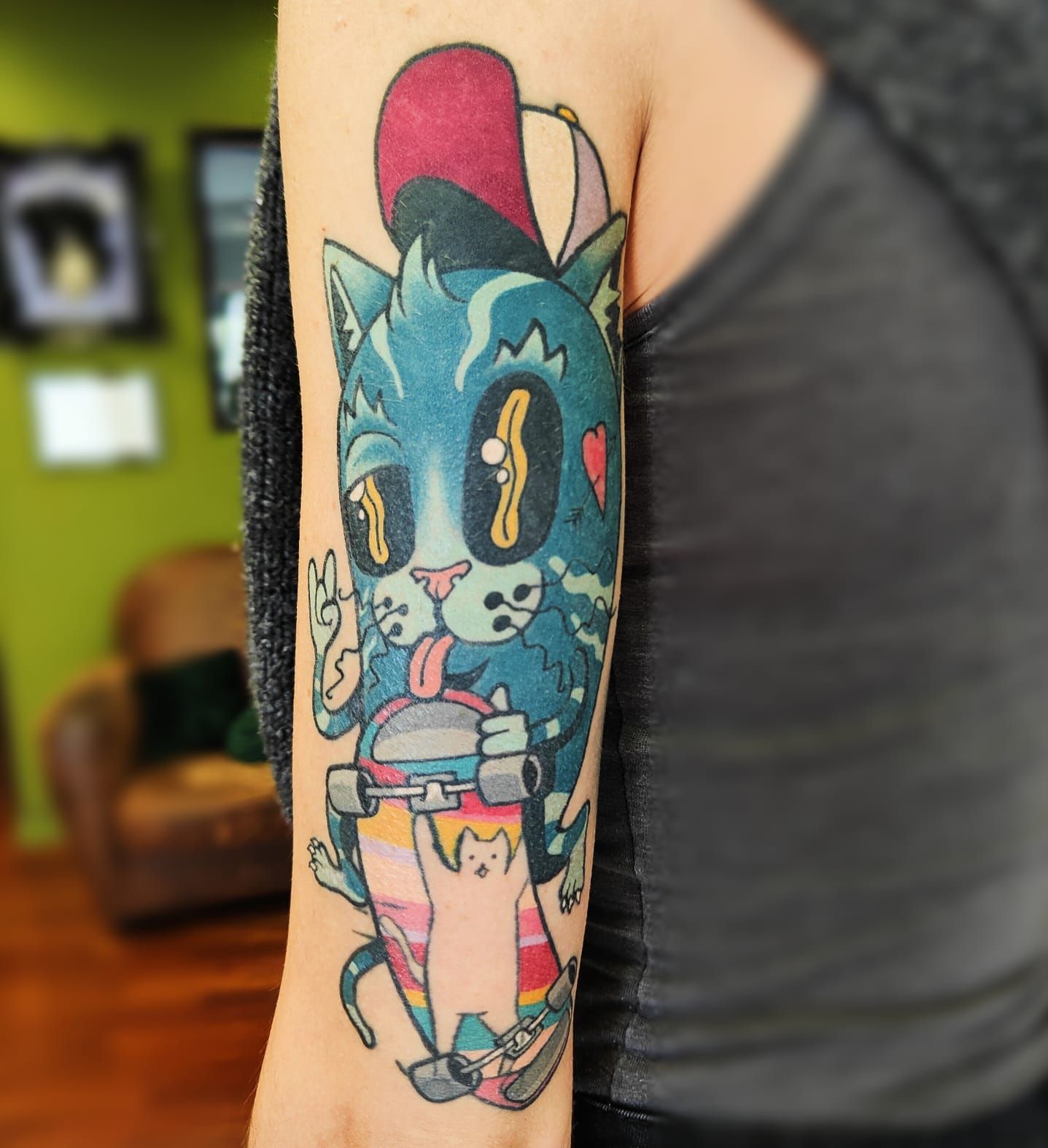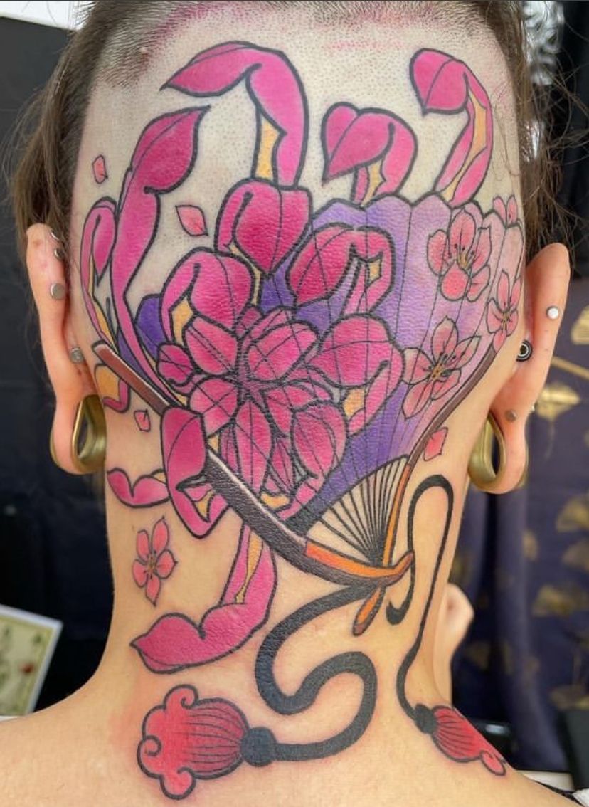 Desty, tatoueur depuis 2019, propose un univers graphique coloré. Ses tatouages sont inspirés de la culture japonaise et des cartoon américain.